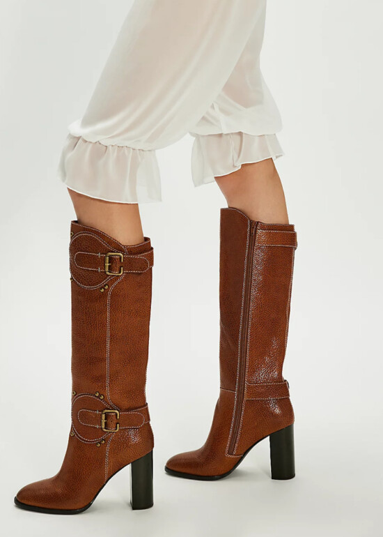 My most worn Winter boots are tan knee highs that I have had for about 20 years. I know that can be frustrating for you but I have found some great alternatives and one very similar pair by Jeffrey Campbell. Wear with dresses, skirts or over slim leg jeans, they will become your go to boots for years to come.